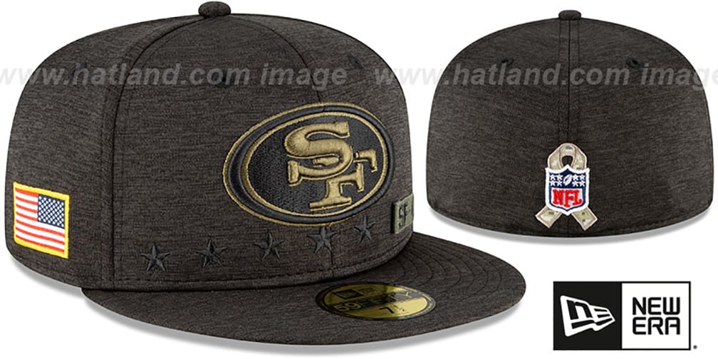 Authentic and ORIGINAL 59FIFTY fitted poly hat by New Era, black shadow tech (heathered black) crown and visor with DIGITAL desert storm camouflage camo undervisor and black headband, raised embroidered team logo on front in military moss green and black over tonal embroidered stars and team initial patch, New Era logo on side, embroidered USA Flag applique on opposite side, embroidered NFL shield logo on back with digital camo military ribbon This is the style of hat worn by all NFL teams played on Salute to Service 2020 weeks. These commemorative caps honor our Armed Forces through patriotic themes that remind us all of the dedication of our troops. All proceeds from the NFL’s Salute to Service campaign are donated to the NFL’s three military appreciation nonprofit partners: USO, Pat Tillman Foundation, and Wounded Warrior Project. EACH CAMO HAT PATTERN WILL BE SLIGHTLY DIFFERENT SO NO TWO HATS WILL BE THE SAME. This San Francisco 49ers baseball cap is made by New Era and is licensed by the NFL National Football League.