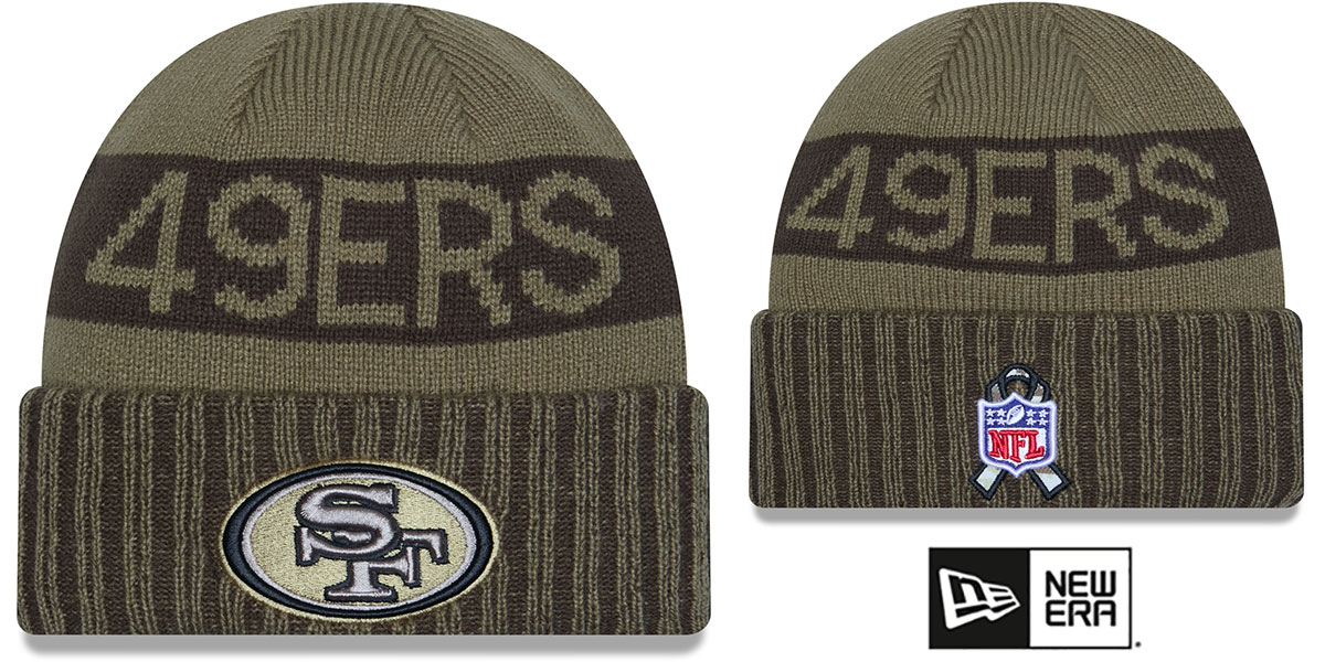 Show your pride on and off the field with the 2025 Salute to Service Cuff Knit. This cold-weather essential features the 49ers logo at the front, a bold team wordmark across the crown, and tribute details including the American flag patch on the side and the official NFL Salute to Service patch at the back. Built for warmth and comfort with 100% Acrylic Crown & Cuff and 90% Polyester/10% Wool Lining. It’s more than just game-day gear—it’s a way to honor those who serve. Every purchase helps support the NFL’s military nonprofit partners. Hand wash, dry flat. This San Francisco 49ers hat is made by New Era and is licensed by the NFL National Football League.