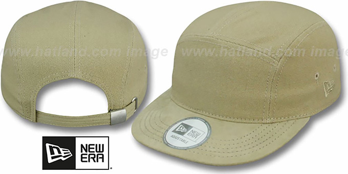 80% cotton 20% polyester blend canvas crown. New Era flag on left side. 5-Panel construction with taped underside seams. embroidered side eyelets. Adjustable back strap has metal buckle with hideaway slot for extra length. One size fits most. This hat is made by New Era.