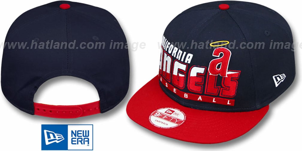 Original 9FIFTY fit adjustable cotton twill hat by New Era that has similar deep crown and flat brim fit as the 59-Fifty, navy blue crown and red visor with throwback green undervisor, embroidered city name and Cooperstown team logo over split color team name on front, New Era logo on side, secondary team color plastic adjustable Snapback strap. This item is on SALE!. This California Angels hat is made by New Era and is licensed by the MLB - Major League Baseball.
