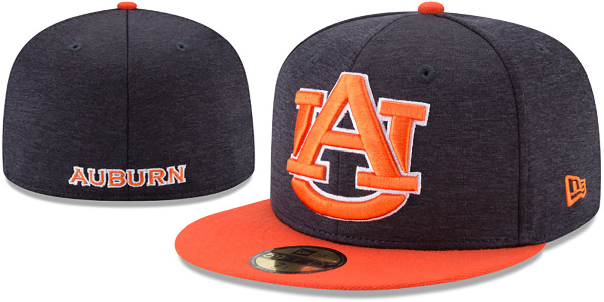Exciting and ORIGINAL 59FIFTY poly fitted hat by New Era! This stunner features a shadow tech heather navy blue deep crown, a solid orange visor, and a light grey undervisor. The front boasts a raised embroidered team logo, while the side showcases an embroidered New Era logo. To top it off, a secondary team logo font is embroidered on the back - this hat is a true standout!. This Auburn Tigers baseball cap is made by New Era and is licensed by the NCAA - College.