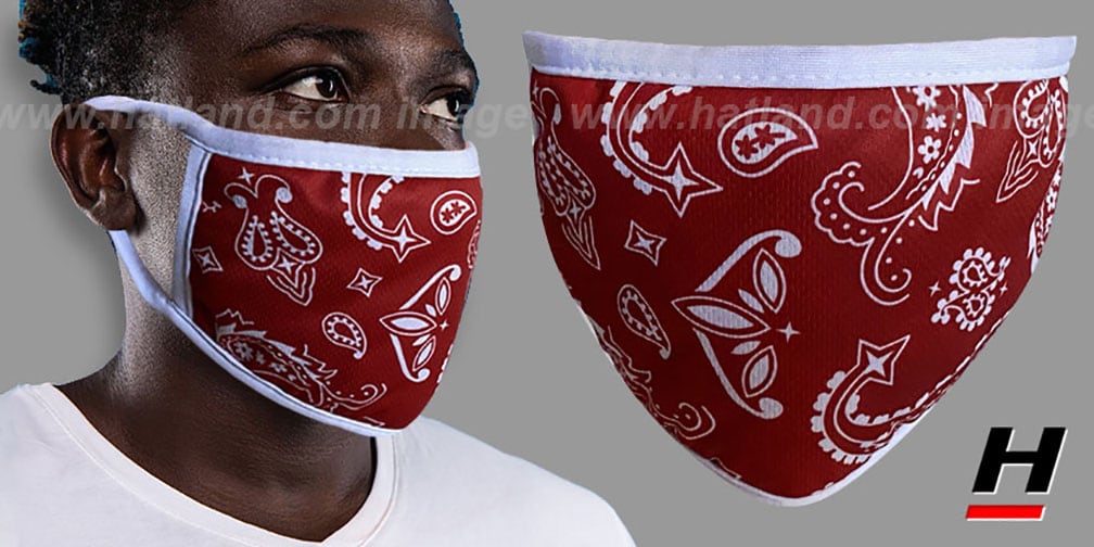 washable, reusable, breathable, poly printed mask with cotton/poly quilted liner. Non-medical grade to help prevent the spread of viruses. Lightweight with elastic straps for maximum comfort. These masks are made in the USA. Unfortunately these are not returnable for health reasons. One size fits most. These prints are EXCLUSIVE to HATLAND.COM. This hat is made by Hatland.com.