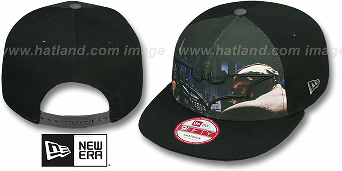 Original fit 9FIFTY adjustable hat by New Era with deep crown and flat brim. 100% polyester black crown and visor Hi-Res Dark Knight Rises action print on front panels with raised embroidered Batman logo. Black under visor and adjustable plastic strap on back. Small New Era flag on left side. Officially licensed DC Comics 'The Dark Knight Rises' Movie hat produced by New Era Superhero Collection. This DC Comics hat is made by New Era and is licensed by the New Era Brand.