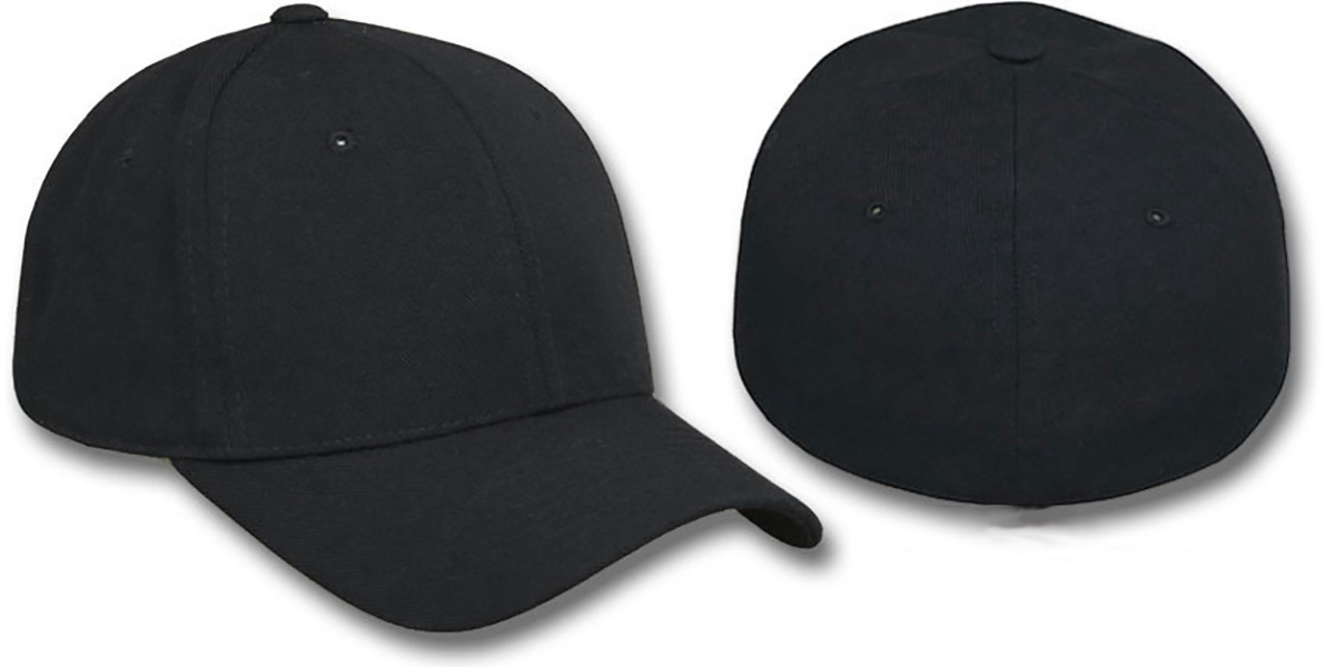 low profile structured 6 panel hat, black wool blend crown and visor without logos on front or back This is the same style of fitted hat that you love in the Zephyr DH and DHS styles but with no team embroideries on the front or back, Some sizes have grey undervisors, some have black undervisors. This hat is made by Zephyr.