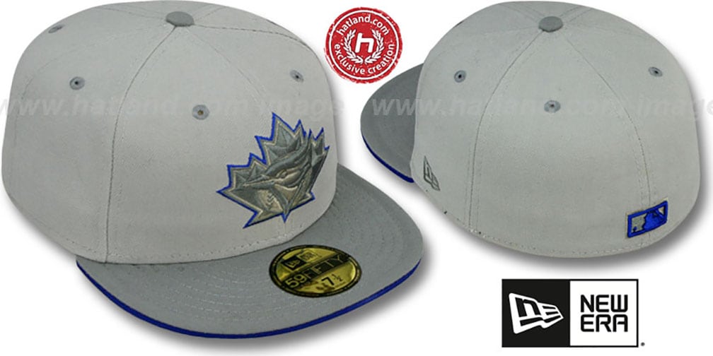 Authentic and ORIGINAL 59FIFTY fitted 100% performance polyester hat by New Era, light grey deep crown with dark grey visor, team color undervisor and flip, raised embroidered team logo on front in light grey and dark grey with team color outline, raised embroidered Cooperstown MLB logo on back in team colors. This Toronto Blue Jays baseball cap is made by New Era and is licensed by the MLB Major League Baseball.
