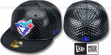 Authentic and ORIGINAL 59FIFTY fitted hat by New Era, white and black plaid cotton deep crown, red visor and undervisor, red raised embroidered Alternate team logo on front with black outline, matching MLB logo on back. This Toronto Blue Jays baseball cap is made by New Era and is licensed by the MLB - Major League Baseball.