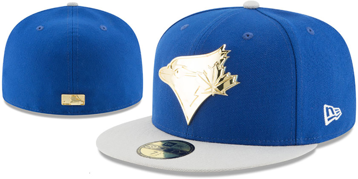 Authentic and ORIGINAL 59Fifty fitted hat by New Era, royal blue authentic poly deep crown and light grey visor, light grey undervisor, gold metal badge team logo attached to front, matching embroidered New Era logo on side, matching gold metal badge MLB logo on back . This Toronto Blue Jays hat is made by New Era and is licensed by the MLB - Major League Baseball.