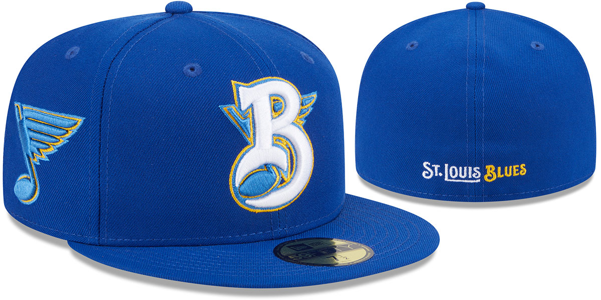 Authentic and ORIGINAL New Era 59FIFTY fitted hat featuring a royal blue polyester crown and visor with a light grey undervisor. Detailed with a raised embroidered DECEPTOR logo on the front, secondary logo on one side, New Era flag on the other, and team jersey font logo on the back.. This St Louis Blues baseball cap is made by New Era and is licensed by the NHL - National Hockey League.