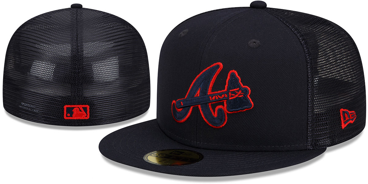The New Era 59FIFTY fitted hat is the official MLB Batting Practice cap for the 2022-23 seasons! This authentic, original design features a dark navy blue front with the team's embroidered logo, navy blue mesh back panels, and a light grey undervisor. Detailed accents include a raised, matching MLB logo on the back and the iconic New Era logo on the side. This is the must-have, game-day accessory for true fans. This Atlanta Braves baseball cap is made by New Era and is licensed by the MLB - Major League Baseball.