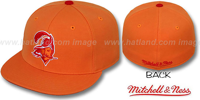'Authentic' wool fitted hat by Mitchell & Ness with original cut and flat brim, team color orange crown and visor with secondary color undervisor, old school Throwback team logo embroidery on front, Mitchell & Ness script embroidery on back. This Tampa Bay Buccaneers hat is made by Mitchell & Ness and is licensed by the NFL - National Football League.