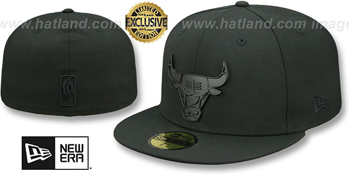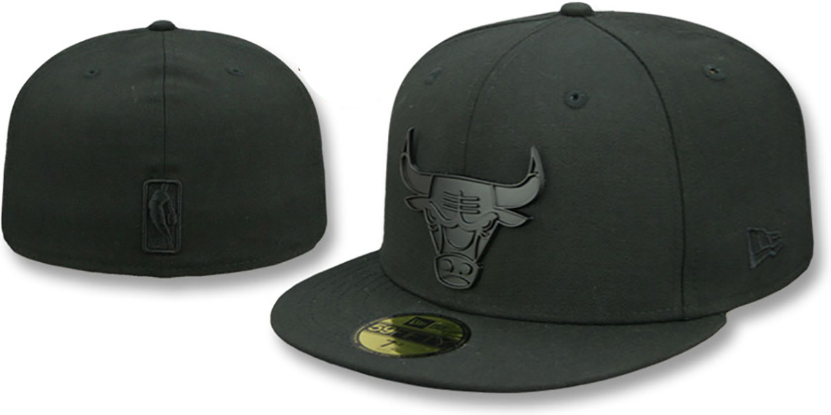 Authentic and ORIGINAL 59Fifty fitted hat by New Era, black wool deep crown and visor, black undervisor, black metal team logo attached to front, black embroidered New Era logo on side, black-on-black raised embroidered NBA logo on back. This Chicago Bulls hat is made by New Era and is licensed by the NBA - National Basketball Association.