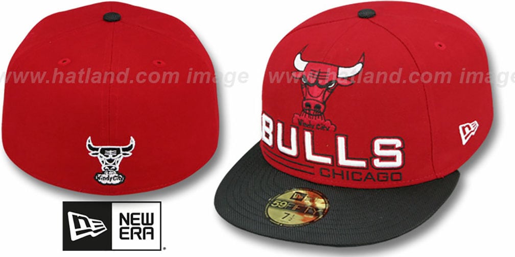 Authentic and ORIGINAL 59Fifty fitted hat by New Era, red authentic poly crown with the high tech fabric that has revolutionary wicking ability, superior drying, and is shrink resistant, black poly mesh textured visor, grey undervisor, embroidered top of team logo on front with team name and city, embroidered team logo on back. This item is on SALE!. This Chicago Bulls hat is made by New Era and is licensed by the NBA - National Basketball Association.