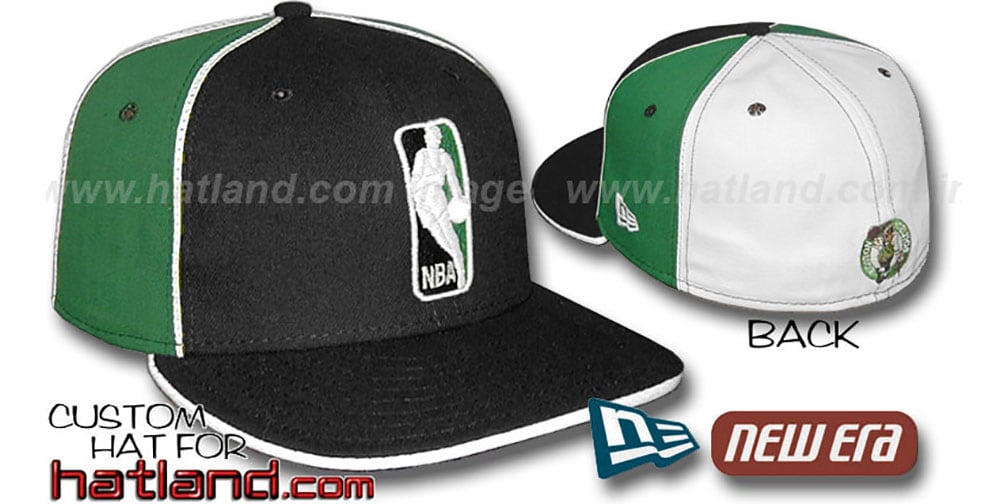 'Authentic' and Original 59FIFTY wool fitted hat by New Era, black front panels-kelly green mid panels-white back panels, black visor with white flip, white piping on mid panels, NBA Logoman embroidery on front in team colors and Celtics team logo on back. This item is on SALE!. This Boston Celtics baseball cap is made by New Era and is licensed by the NBA - National Basketball Association.