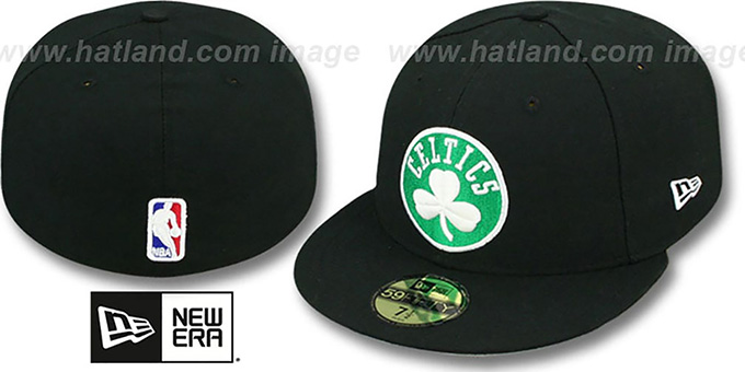 Authentic and ORIGINAL 59Fifty fitted hat by New Era, black authentic poly deep crown and visor with the high tech fabric that has revolutionary wicking ability, superior drying, and is shrink resistant, light grey undervisor, raised embroidered team logo on front, embroidered NBA logo on back. This Boston Celtics hat is made by New Era and is licensed by the NBA - National Basketball Association.