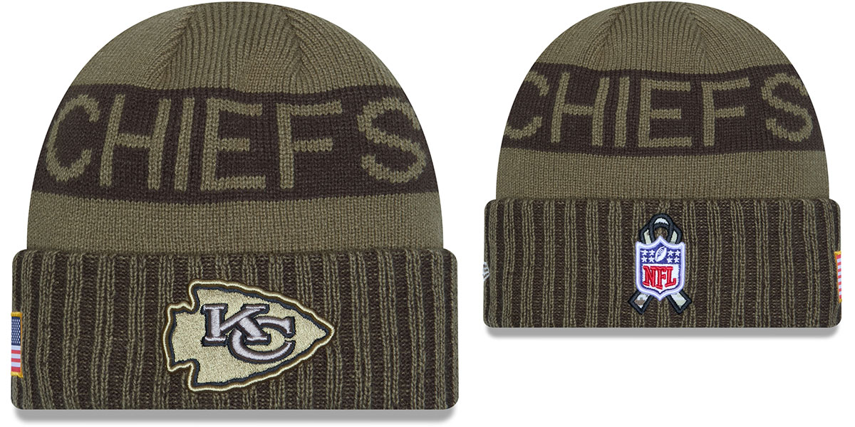 Show your pride on and off the field with the 2025 Salute to Service Cuff Knit. This cold-weather essential features the Chiefs logo at the front, a bold team wordmark across the crown, and tribute details including the American flag patch on the side and the official NFL Salute to Service patch at the back. Built for warmth and comfort with 100% Acrylic Crown & Cuff and 90% Polyester/10% Wool Lining. It’s more than just game-day gear—it’s a way to honor those who serve. Every purchase helps support the NFL’s military nonprofit partners. Hand wash, dry flat. This Kansas City Chiefs hat is made by New Era and is licensed by the NFL National Football League.