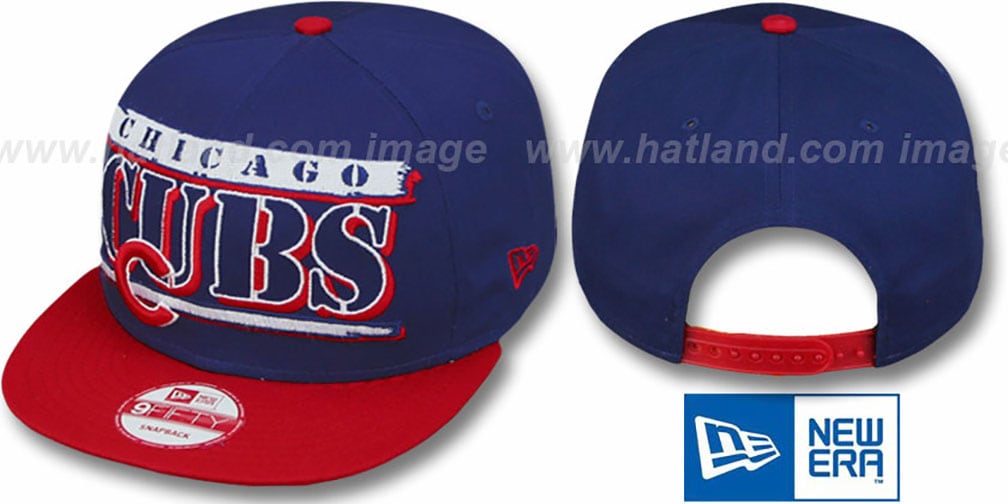 Authentic cotton twill adjustable hat by New Era with 9FIFTY original cut and flat brim, dark royal blue crown and red visor, green undervisor, embroidered city name over raised embroidered STILL BREAKIN logo on front with small team logo, embroidered New Era logo on side, secondary color adjustable plastic Snapback strap. This Chicago Cubs hat is made by New Era and is licensed by the MLB - Major League Baseball.