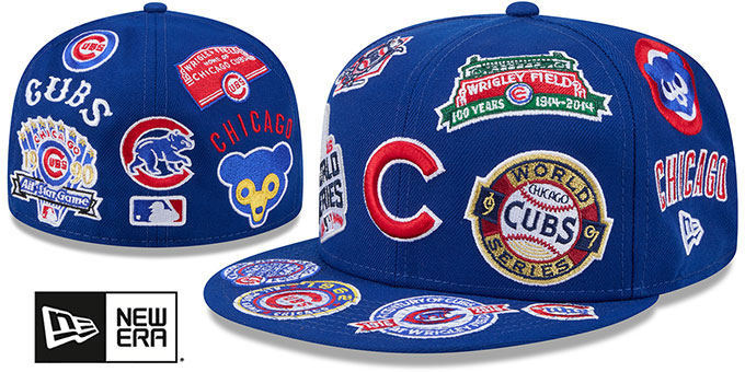 Authentic and ORIGINAL 59Fifty fitted hat by New Era, royal blue authentic poly deep crown and visor with a light grey undervisor, raised embroidered team logo on front, embroidered Cooperstown and associated team logos embroidered ALL-OVER crown and visor, embroidered MLB Batterman logo on back. This Chicago Cubs hat is made by New Era and is licensed by the MLB - Major League Baseball.