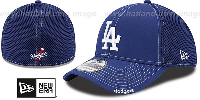low profile structured 39THIRTY flex hat by New Era, royal blue cotton twill front panels and pre-curved visor, royal foam neo-mesh middle and back panels, light grey contrast stitching throughout crown and brim, embroidered team name on side front of visor, royal undervisor, raised embroidered alternate team logo on front, embroidered team logo on back This Flex 39THIRTY hat fits approximate head sizes, SM/MED 6 7/8 - 7 3/8, MED/LG 7 1/4 - 7 5/8, LG/XL 7 1/2 - 8. This Los Angeles Dodgers hat is made by New Era and is licensed by the MLB - Major League Baseball.