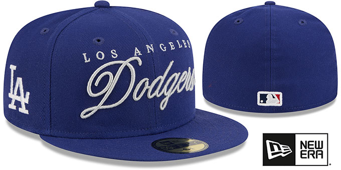 Authentic and ORIGINAL 59Fifty fitted hat by New Era, royal blue authentic poly deep crown and visor, light grey undervisor, embroidered team city on front over raised embroidered script team name, embroidered team logo on side with raised emabroidered MLB logo on back. This Los Angeles Dodgers hat is made by New Era and is licensed by the MLB - Major League Baseball.