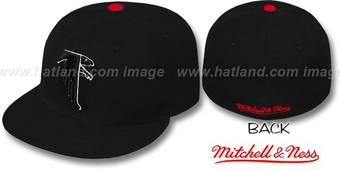 'Authentic' wool fitted hat by Mitchell & Ness with original cut and flat brim, black crown and visor with secondary color undervisor, old school Throwback team logo embroidery on front, Mitchell & Ness script embroidery on back . This Atlanta Falcons hat is made by Mitchell & Ness and is licensed by the NFL - National Football League.