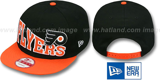 Original fit 9FIFTY adjustable cotton twill hat by New Era that has similar deep crown and flat brim fit as the 59-Fifty, black crown with orange visor, light grey undervisor, embroidered team name with raised embroidered Vintage, Old School team logo, embroidered New Era logo on side, secondary team color plastic adjustable Snapback strap. This item is on SALE!. This Philadelphia Flyers hat is made by New Era and is licensed by the NHL - National Hockey League.