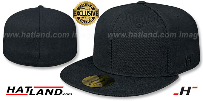 BLANK wool blend fitted hat by HATLAND.com with Hybrid E5 fit, black deep crown and visor, black undervisor, black sweatband, no logos on front or back of hat, black tonal HATLAND H logo embroidered on side of hat, This blank fitted hat is an original Hybrid E5 fitted cut by HATLAND.com which is the best of all the favorite fitted brands in one. This hat is made by Hatland.