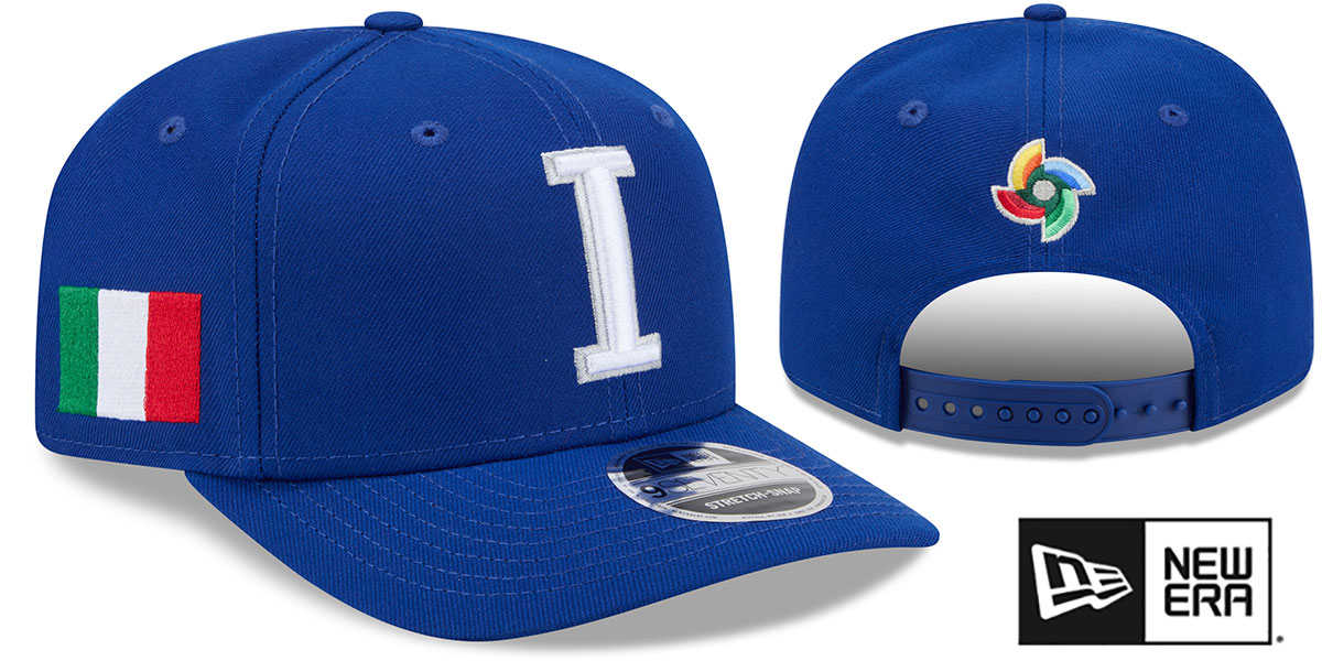 Authentic poly adjustable hat by New Era 9SEVENTY with rounded crown and slightly curved brim, royal blue crown and visor, light grey undervisor, raised embroidered World Baseball Classic team logo on front, embroidered country flag on side, WBC logo embroidered above royal adjustable Stretch Snapback closure, This is the snapback version of the style of On-field hat worn by all teams during the 2026 World Baseball Classic, . This hat is made by New Era and is licensed by the WBC World Baseball Classic.