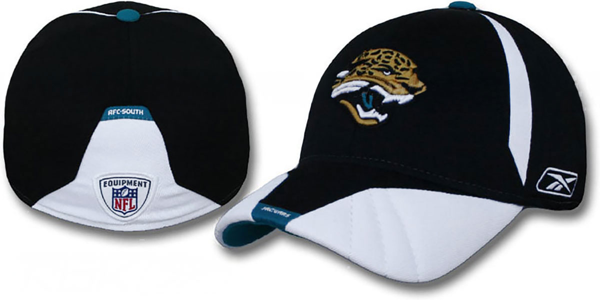 2008 NFL Sideline Hatteam color rounded nylon and cotton crown with white sideseam inserts, team color and white curved visor with team name on front center of brim, raised embroidered team logo on front, white insert on back with conference and division, NFL Shield Equipment logo on backOSFA fits approximate sizes 7 1/8 - 7 1/2. This Jacksonville Jaguars hat is made by Reebok and is licensed by the NFL - National Football League.