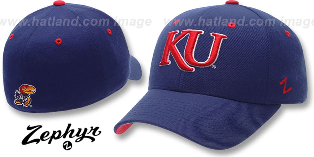 Exciting new royal blue wool blend hat! Features a low-profile structured 6-panel design with a raised embroidered primary team logo in team colors on the front. Includes an embroidered secondary logo on the back. This stylish cap is perfect for showing off your team spirit. This Kansas Jayhawks hat is made by Zephyr and is licensed by the NCAA College.