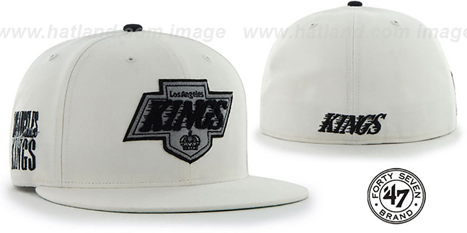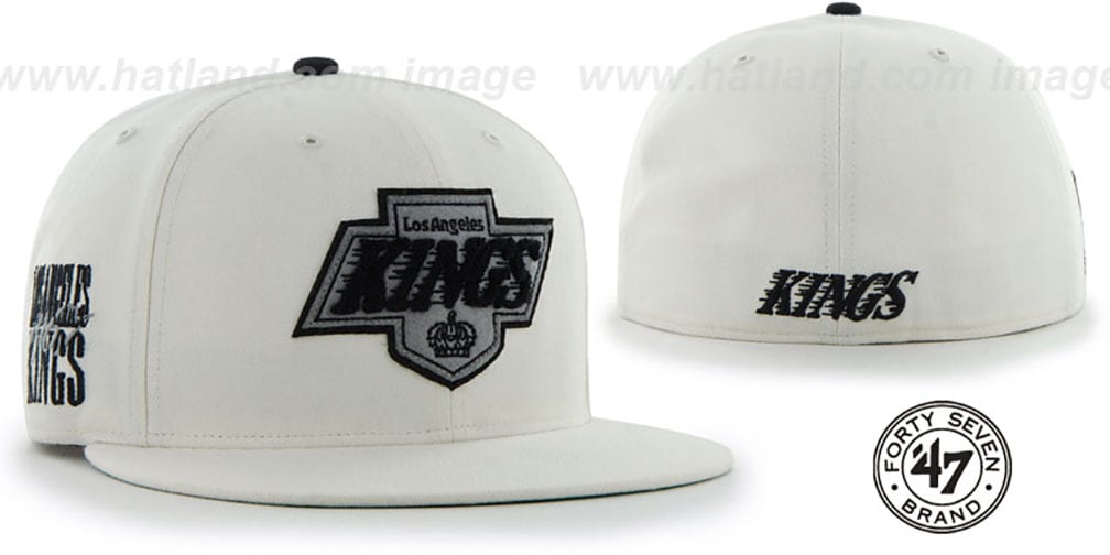 Authentic wool blend fitted hat with original cut and flat brim by Twins 47 Brand, white crown and visor, throwback kelly green undervisor, raised embroidered Chenille Letterman's NHL team logo on front with outline, embroidered team name and established year on side, embroidered 47 Brand logo on side, matching embroidered secondary logo on back. This item is on SALE!. This Los Angeles Kings hat is made by 47 Brand and is licensed by the NHL - National Hockey League.