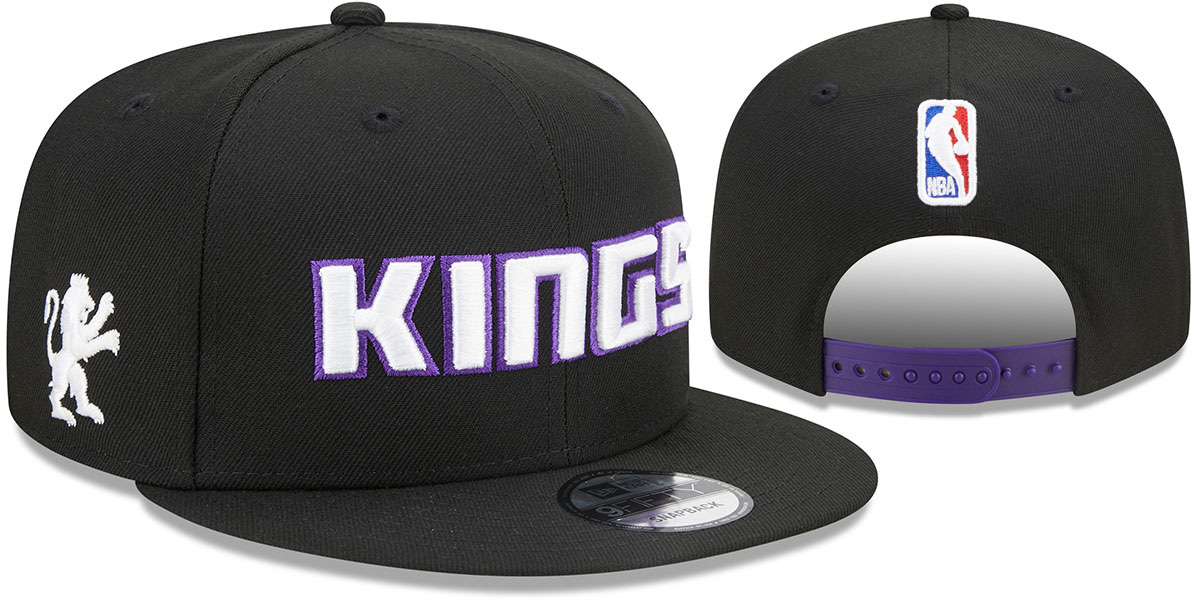 Original fit 9FIFTY adjustable hat by New Era that has similar deep crown and flat brim fit as the 59-Fifty, black authentic poly crown and visor, light grey undervisor, raised embroidered STATEMENT logo on front, embroidered New Era logo on side, matching embroidered STATEMENT design logo on opposite side, raised embroidered NBA logo in white with royal and red fill over matching team color snapback closure, Produced to match NBA STATEMENT Jerseys worn throughout select 2022-2023 games. This Sacramento Kings hat is made by New Era and is licensed by the NBA - National Basketball Association.