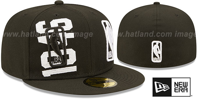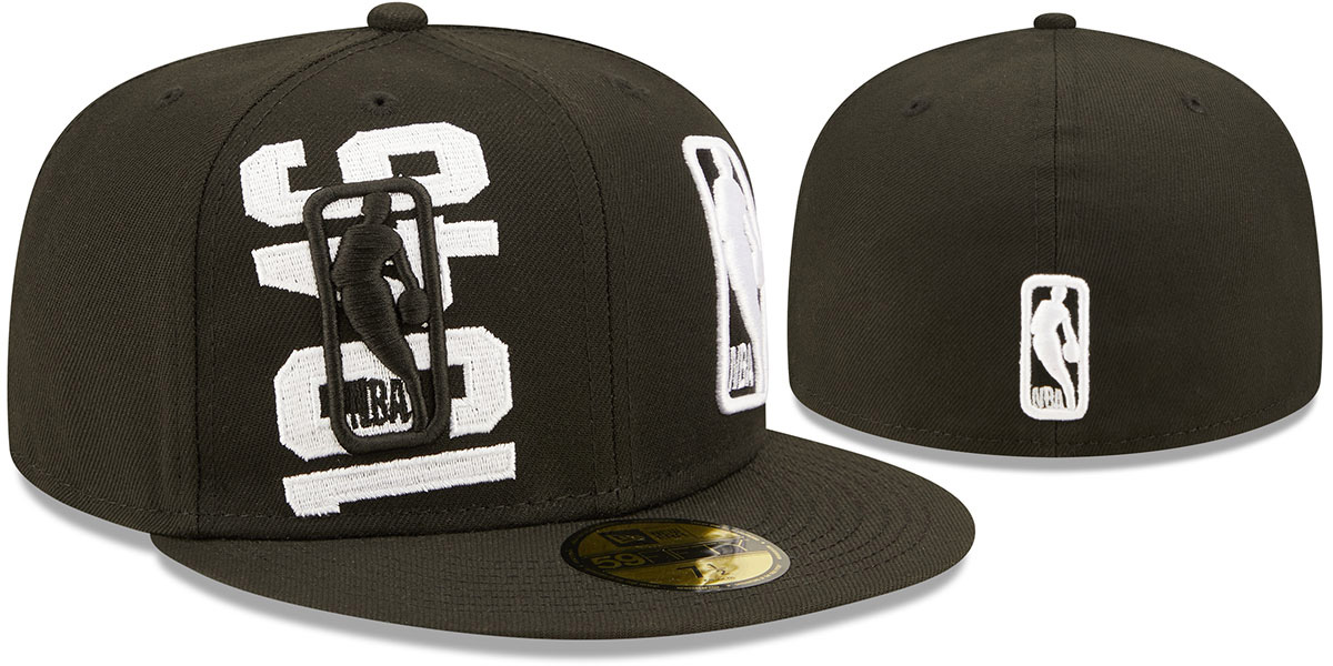 Authentic and ORIGINAL 59Fifty fitted hat by New Era, black authentic poly crown and visor, light grey undervisor, raised embroidered 2022 Double Whammy draft logo on front with NBA Logoman in black over white 1946 on side front panel and NBA logo on opposite side front panel in black and white, matching embroidered New Era logo on side, raised embroidered NBA logo on back in white with black fill, The 59FIFTY hat worn onstage during the 2022 NBA Draft. This baseball cap is made by New Era and is licensed by the NBA - National Basketball Association.