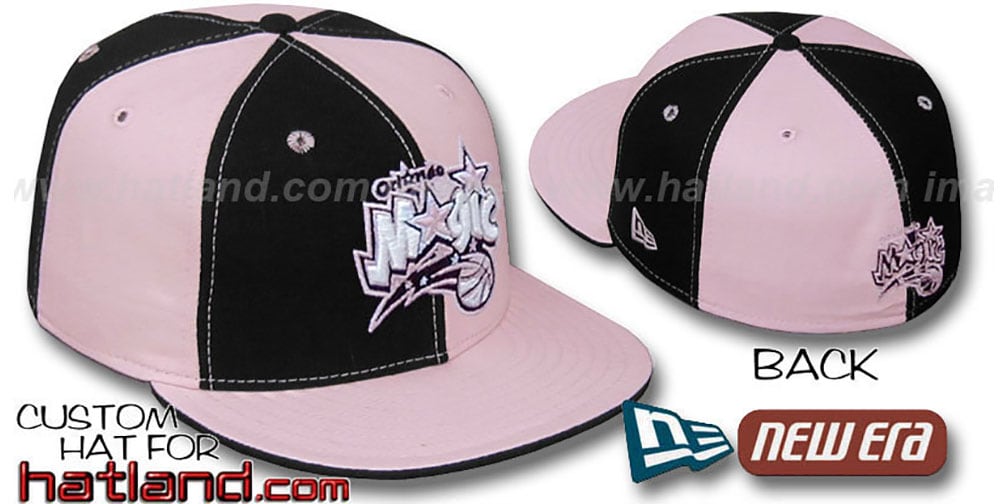 'Authentic' New Era ORIGINAL 59FIFTY fitted hat, black and pink alternating cotton panels, pink visor with a black undervisor and flip, raised embroidered team logo on front in pink, black, and white with matching team logo on back.conversion chart. This item is on SALE!. This Orlando Magic baseball cap is made by New Era and is licensed by the NBA - National Basketball Association.