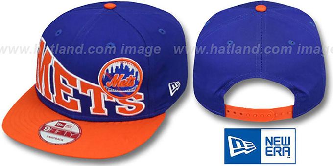 Original fit 9FIFTY adjustable cotton twill hat by New Era that has similar deep crown and flat brim fit as the 59-Fifty, royal blue crown with orange visor, light grey undervisor, embroidered team name with raised embroidered team logo, embroidered New Era logo on side, secondary team color plastic adjustable Snapback strap. This item is on SALE!. This New York Mets hat is made by New Era and is licensed by the MLB - Major League Baseball.