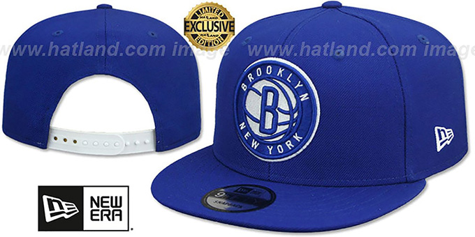 Original fit 9FIFTY adjustable wool hat by New Era that has similar deep crown and flat brim fit as the 59-Fifty, royal blue crown and visor, light grey undervisor, raised embroidered team logo on front in royal and white, embroidered New Era flag on side in white, white adjustable Snapback strap closure . This Brooklyn Nets hat is made by New Era and is licensed by the NBA - National Basketball Association.