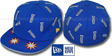 'Authentic' and Original 59FIFTY fitted hat by New Era, purple wool deep crown and visor, grey undervisor and flip, raised embroidered 'Bomb' logos All-Over deep crown and visor in grey, explosion embroidery on brim. This baseball cap is made by New Era.