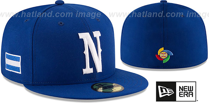 Authentic and ORIGINAL 5950 fitted performance poly hat by New Era, royal blue crown and visor with the high tech fabric that has revolutionary wicking ability, superior drying, and is shrink resistant, black undervisor to reduce glare, raised embroidered World Baseball Classic team logo on front, WBC logo on rear of hat. This is the style of On-field hat worn by all teams during the 2017 World Baseball Classic. This Nicaragua hat is made by New Era and is licensed by the WBC World Baseball Classic.