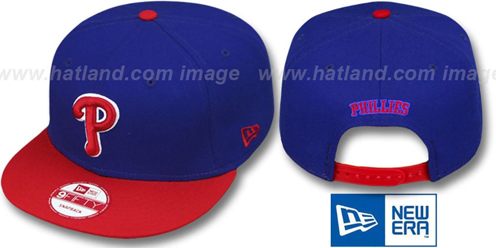 Original fit 9FIFTY adjustable wool hat by New Era that has similar deep crown and flat brim fit as the 59-Fifty, royal blue crown and red visor with grey undervisor, raised embroidered team logo on front, embroidered team name on back above secondary team color plastic adjustable Snapback strap This is an Onfield Replica of the style of hat worn by all MLB teams in a Snapback. This Philadelphia Phillies hat is made by New Era and is licensed by the MLB - Major League Baseball.