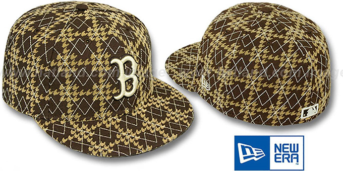 'Authentic' and Original 5950 fitted hat by New Era, brown wool blend crown and visor, fuzzy felt 'A-TOOTH Flocking' All-Over Crown and visor in wheat, brown undervisor, light tan Argyle stitching throughout crown and visor, light tan raised embroidered team logo on front, matching MLB logo on back. This Boston Red Sox hat is made by New Era and is licensed by the MLB - Major League Baseball.