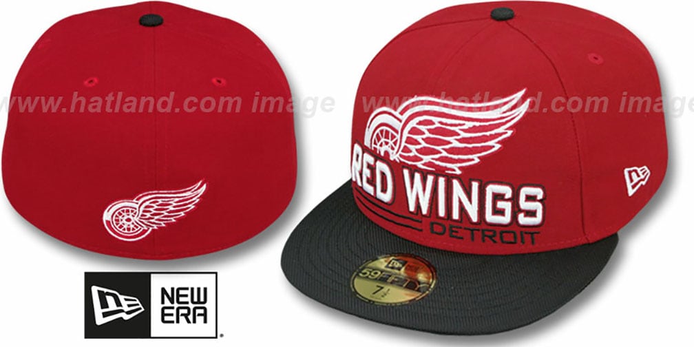 Authentic and ORIGINAL 59Fifty fitted hat by New Era, red authentic poly crown with the high tech fabric that has revolutionary wicking ability, superior drying, and is shrink resistant, black poly mesh textured visor, grey undervisor, embroidered top of team logo on front with team name and city, embroidered team logo on back. This item is on SALE!. This Detroit Red Wings hat is made by New Era and is licensed by the NBA - National Basketball Association.