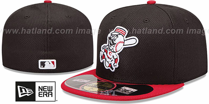 Made of 100% Woven Polyester Batting Practice Cap worn during Spring training. Front embroidered team logo with small MLB logo on back. Updated Team Primary and Secondary Color Combinations, black undervisor, 59FIFTY infused with the latest NE TECH materials to keep players cool and dry on the field of play. Made with a new state-of-the art performance diamond print fabric, the first-class Diamond Era 59FIFTY is lighter for increased breathability. The premier cap also features SOLARERA™, 50+ UV protection that helps deflect the sun's unforgiving rays and COOLERA™ technology that wicks away sweat to keep players comfortable and dry, allowing them to focus on optimal performance. Performance Sweatband. This Cincinnati Reds baseball cap is made by New Era and is licensed by the MLB - Major League Baseball.