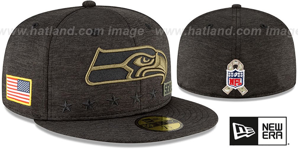 Authentic and ORIGINAL 59FIFTY fitted poly hat by New Era, black shadow tech (heathered black) crown and visor with DIGITAL desert storm camouflage camo undervisor and black headband, raised embroidered team logo on front in military moss green and black over tonal embroidered stars and team initial patch, New Era logo on side, embroidered USA Flag applique on opposite side, embroidered NFL shield logo on back with digital camo military ribbon This is the style of hat worn by all NFL teams played on Salute to Service 2020 weeks. These commemorative caps honor our Armed Forces through patriotic themes that remind us all of the dedication of our troops. All proceeds from the NFL’s Salute to Service campaign are donated to the NFL’s three military appreciation nonprofit partners: USO, Pat Tillman Foundation, and Wounded Warrior Project. EACH CAMO HAT PATTERN WILL BE SLIGHTLY DIFFERENT SO NO TWO HATS WILL BE THE SAME. This Seattle Seahawks baseball cap is made by New Era and is licensed by the NFL National Football League.