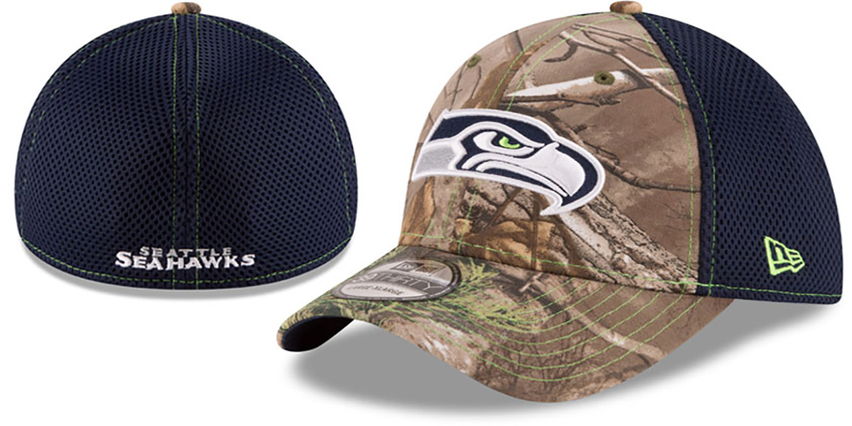 low profile structured 6 panel flex hat, REALTREE cotton twill front panels and pre-curved visor, navy blue foam BP mesh middle and back panels, secondary team color contrast stitching throughout crown and brim, navy undervisor, raised embroidered team logo on front in team colors, embroidered secondary team logo on back This Flex 39THIRTY hat fits approximate head sizes, SM/MED 6 7/8 - 7 3/8, MED/LG 7 1/4 - 7 5/8, LG/XL 7 1/2 - 8. This Seattle Seahawks hat is made by New Era and is licensed by the NFL - National Football League.