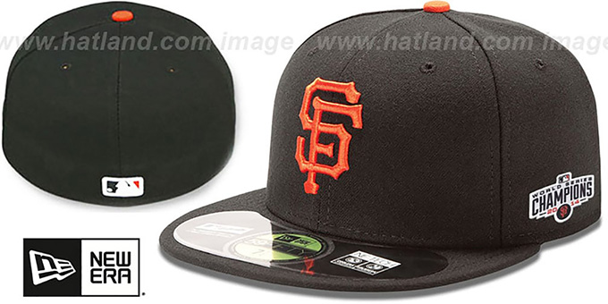 LIMITED QUANTITIES!!! While Supplies Last!!! Authentic Collection 59FIFTY wool fitted hat by New Era, black deep crown and visor, black undervisor, raised embroidered team logo on front, 2014 WORLD SERIES CHAMPS embroidered patch on side, matching raised embroidered MLB logo on back . This San Francisco Giants baseball cap is made by New Era and is licensed by the MLB - Major League Baseball.