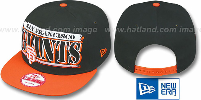 Authentic cotton twill adjustable hat by New Era with 9FIFTY original cut and flat brim, black and orange visor, green undervisor, embroidered city name over raised embroidered STILL BREAKIN logo on front with small team logo, embroidered New Era logo on side, secondary color adjustable plastic Snapback strap. This San Francisco Giants hat is made by New Era and is licensed by the MLB - Major League Baseball.