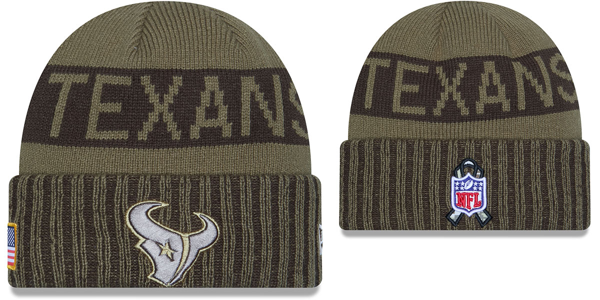 Show your pride on and off the field with the 2025 Salute to Service Cuff Knit. This cold-weather essential features the Texans logo at the front, a bold team wordmark across the crown, and tribute details including the American flag patch on the side and the official NFL Salute to Service patch at the back. Built for warmth and comfort with 100% Acrylic Crown & Cuff and 90% Polyester/10% Wool Lining. It’s more than just game-day gear—it’s a way to honor those who serve. Every purchase helps support the NFL’s military nonprofit partners. Hand wash, dry flat. This Houston Texans hat is made by New Era and is licensed by the NFL National Football League.