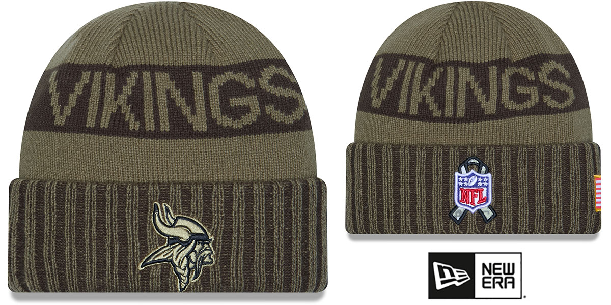 Show your pride on and off the field with the 2025 Salute to Service Cuff Knit. This cold-weather essential features the Vikings logo at the front, a bold team wordmark across the crown, and tribute details including the American flag patch on the side and the official NFL Salute to Service patch at the back. Built for warmth and comfort with 100% Acrylic Crown & Cuff and 90% Polyester/10% Wool Lining. It’s more than just game-day gear—it’s a way to honor those who serve. Every purchase helps support the NFL’s military nonprofit partners. Hand wash, dry flat. This Minnesota Vikings hat is made by New Era and is licensed by the NFL National Football League.