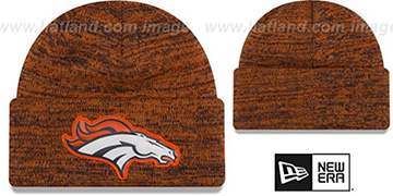 This beanie features a knit crown and cuff in a vibrant purple and gold color scheme. The front displays an embossed nylon team logo, outlined with embroidery. An embroidered New Era flag decorates the side, while the top is devoid of a pom-pom. This Minnesota Vikings hat is made by New Era and is licensed by the NFL - National Football League.
