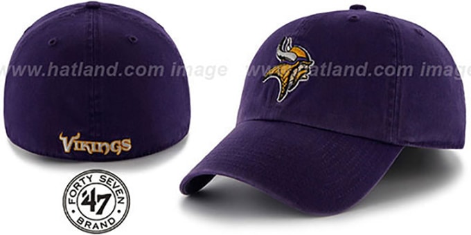 The 47 Brand cotton hat (formerly called Twins Enterprise) features an unstructured, low-profile design with a pre-washed, broken-in team-colored crown and pre-curved visor. The undervisor is also team-colored, and the hat displays the primary team logo embroidered on the front and the secondary logo on the back. This hat provides a great, pre-worn fit. Available sizes range from Small (7 - 7 1/8) to X-Large (7 5/8 - 7 3/4). This Minnesota Vikings hat is made by 47 Brand and is licensed by the NFL - National Football League.
