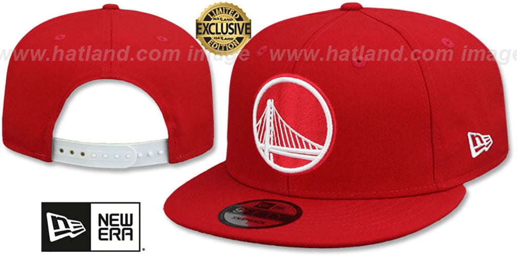Original fit 9FIFTY adjustable wool hat by New Era that has similar deep crown and flat brim fit as the 59-Fifty, red crown and visor, light grey undervisor, raised embroidered team logo on front in red and white, embroidered New Era flag on side in white, white adjustable Snapback strap closure . This Golden State Warriors hat is made by New Era and is licensed by the NBA - National Basketball Association.